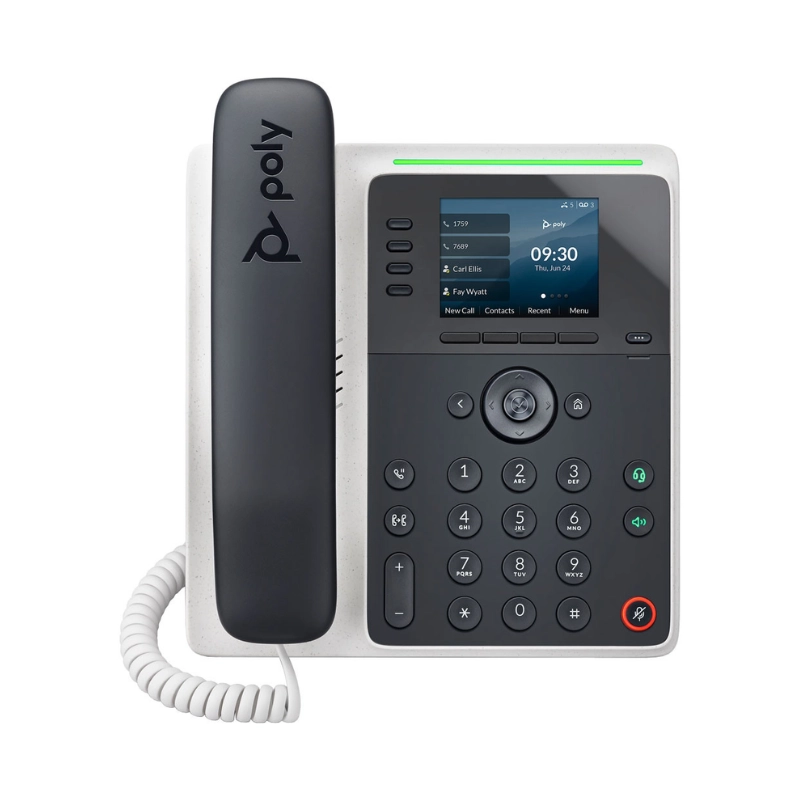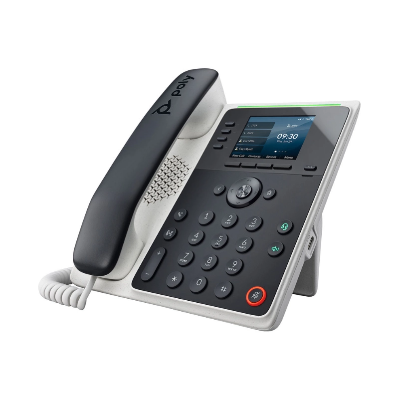 The Poly Edge E220 IP Phone is a sleek, PoE-enabled solution designed for GSA/TAA compliance, making it perfect for professional environments. With advanced Poly noise reduction technology, HD voice quality, and NoiseBlockAI, this desk phone ensures crystal-clear conversations and minimizes distractions. Easy to use, secure, and reliable, the Poly Edge E220 combines cutting-edge design with everyday features, making it ideal for entry-level users or common areas.